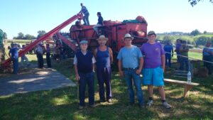 générations de Vincent à s’activer autour de la machine : Guy, Roger, son père, Henri, un de ses fils et Clément, son petit-fils.